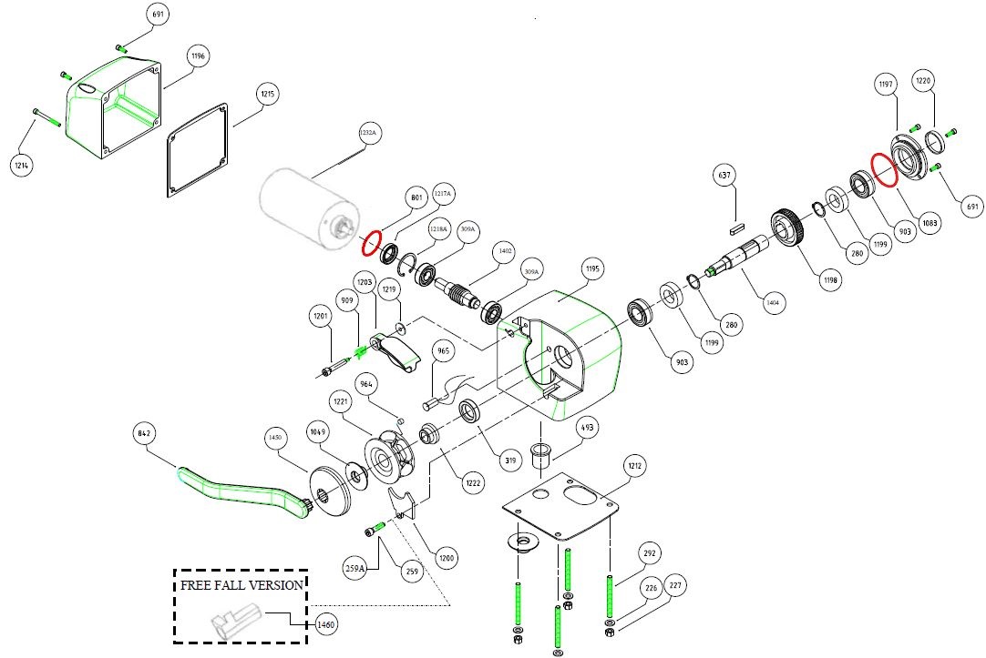 | Code | Description | Construction | Motor size | Power Supply | Maximum Pull | Working load (kg) | Line Speed at W.L | Max Line Speed | Net Weight | Type | Dimension (mm) | Gypsy For Chain | Gypsy For Rope | Amps Work Load (A) | Automatic Free Fall |
